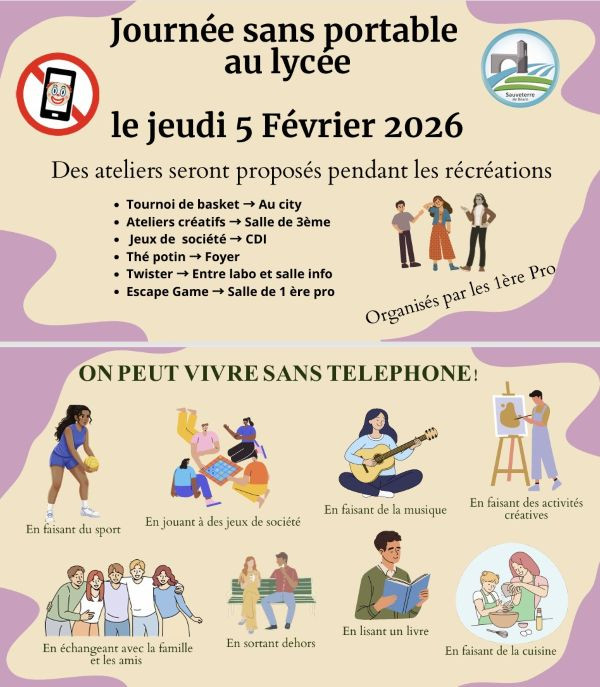 Les étudiants de 1ère Professionnelle SAPAT organisent la journée sans portable, le jeudi 5 février 2026, pour les collégiens, les lycéens et aussi les adultes.
